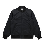 Construction: Ribbed collared jacket, two side pockets, YKK snap dome to close, internal patch pocket, ribbed collar, cuffs and hem